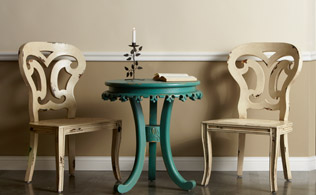We might live in the twenty-first century, but who doesn't crave a little old world craftsmanship now and then? Here you'll find hand painted and hand finished tables, chairs and accessories from GuildMaster that are certain to bring a touch of shabby chic charm to any room in your home. Weathered textures. Ornate carving. Rich materials like mahogany and satiny leather. Your home will look past perfect; no time machine necessary.
